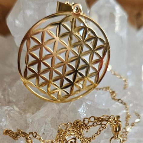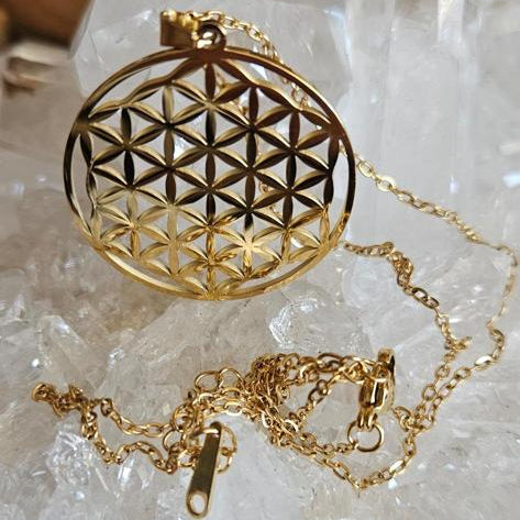 Edelstahl-Halskette mit Blume des Lebens Anhänger in Gold
