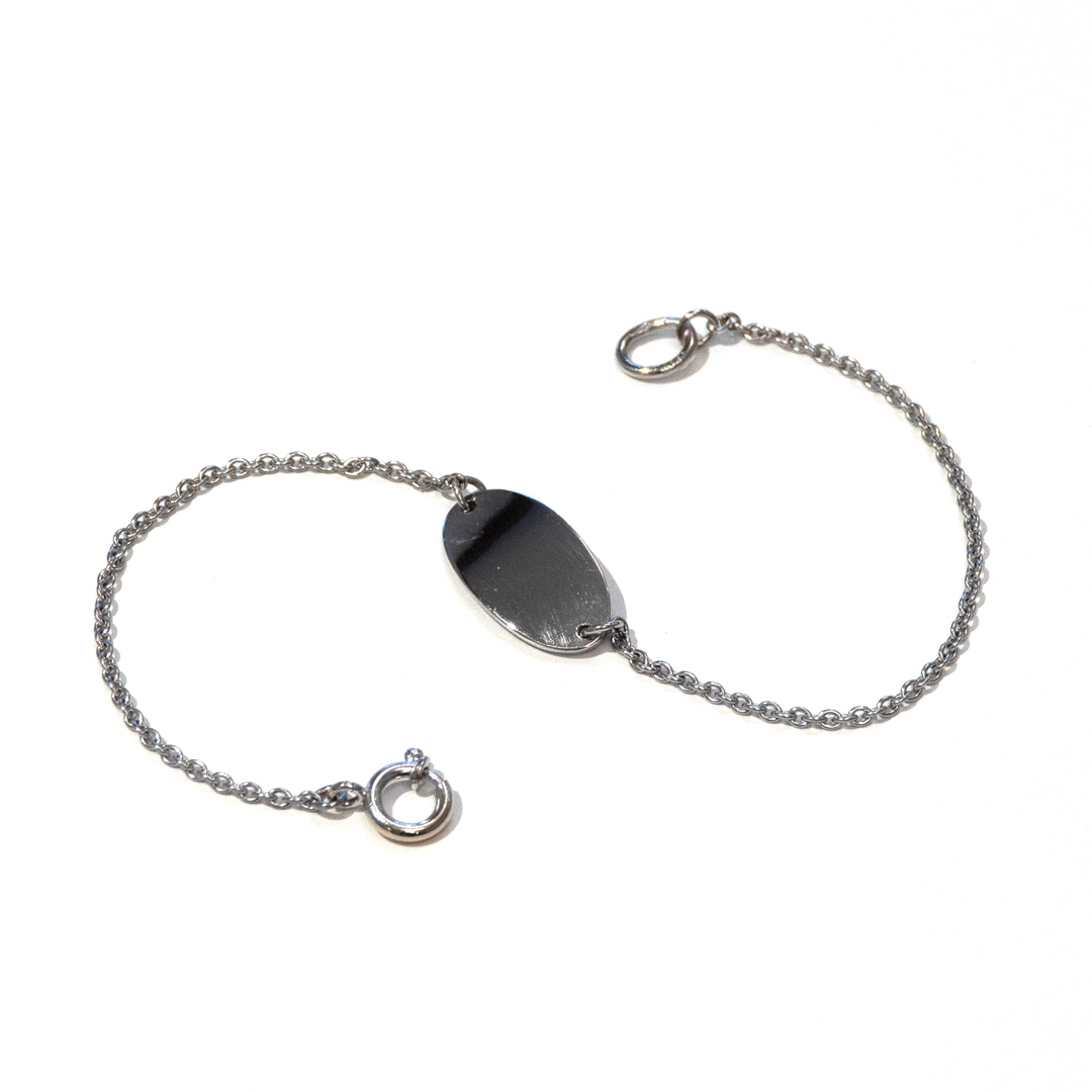 Ein Armband mit einer Ankerkette und einer ovalen Gravurplatte, ca. 16x8mm in der Mitte, aus Platin 950 poliert, Gesamtlänge 18cm