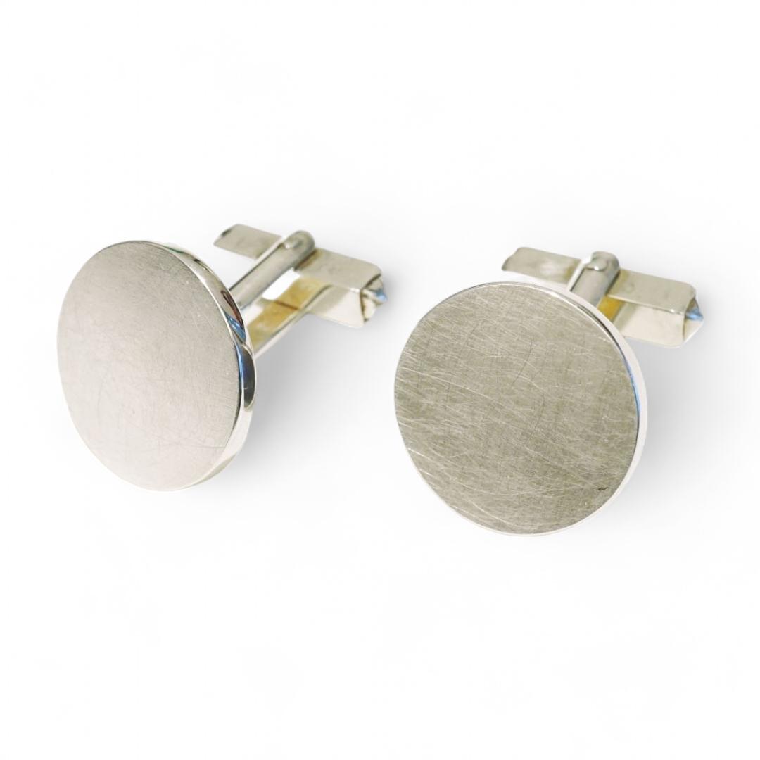 Ein Paar silberne Manschettenknöpfe rund, ø 20mm x ca. 3.0mm Höhe, Sterling Silber 925 mit Knebelverschluss.