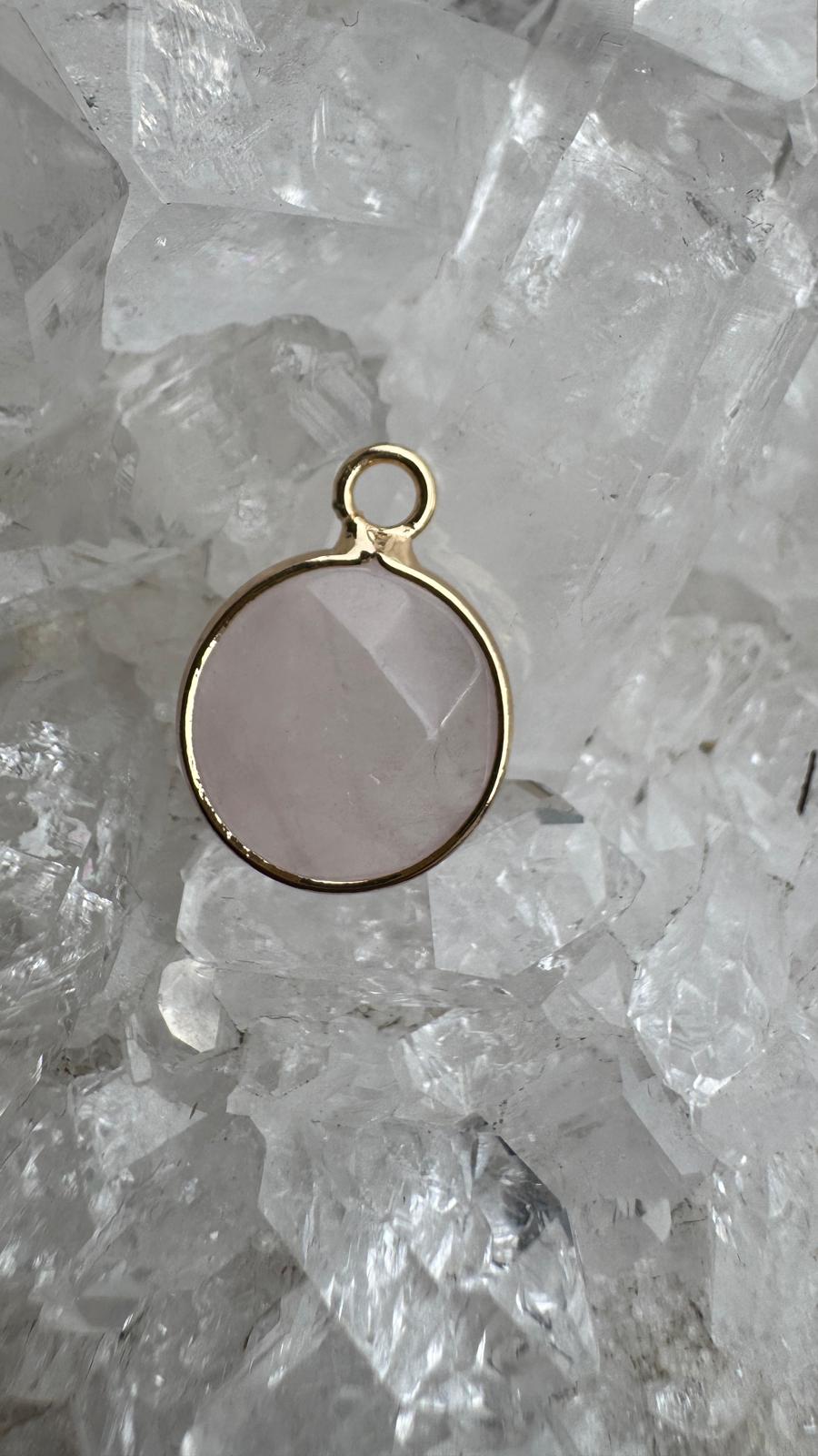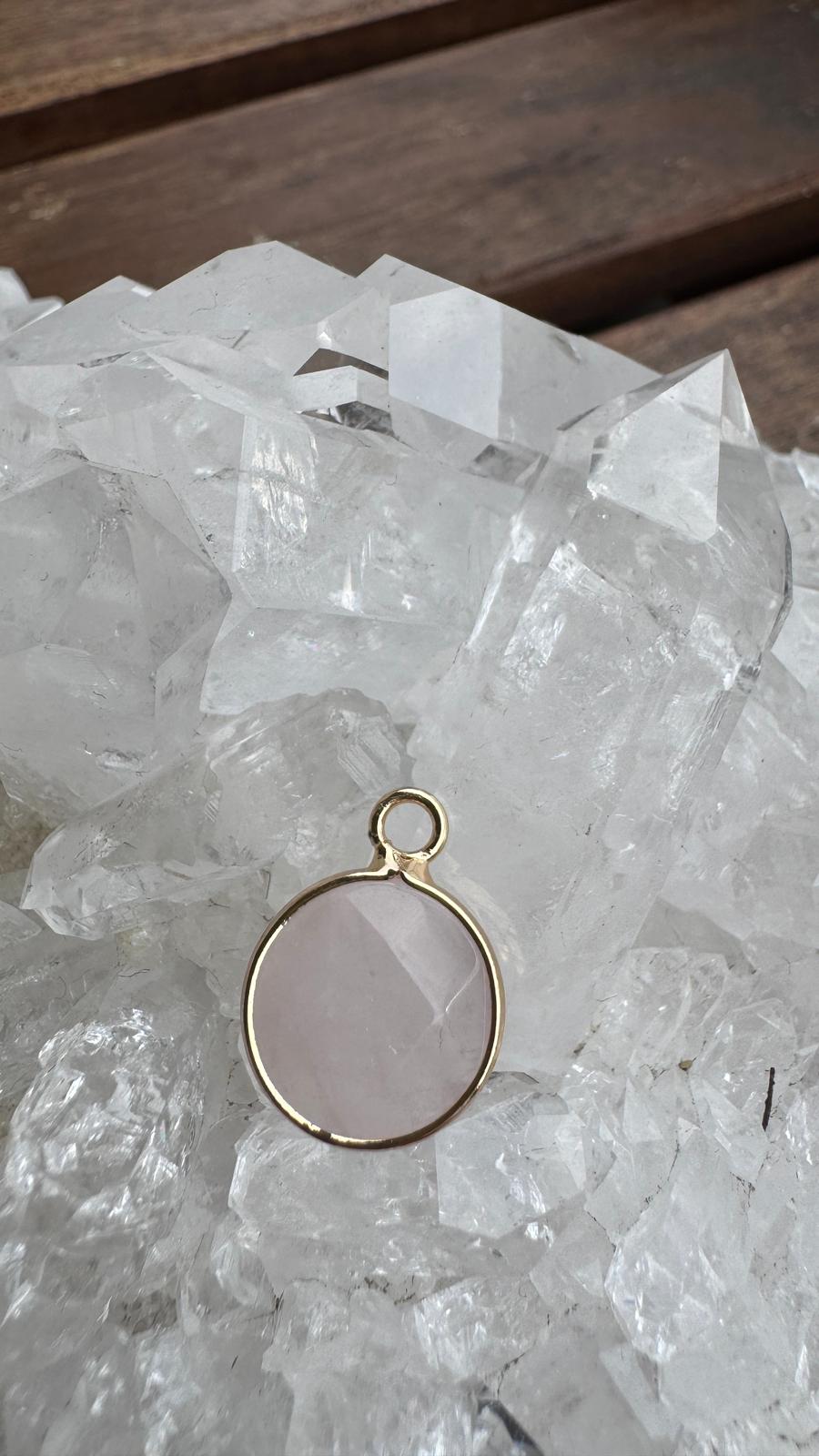 Rosenquarz Anhänger – Leicht vergoldet (Brass Edge)