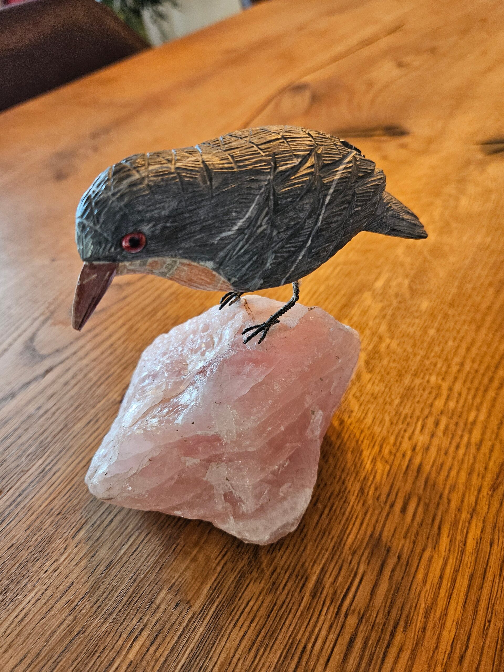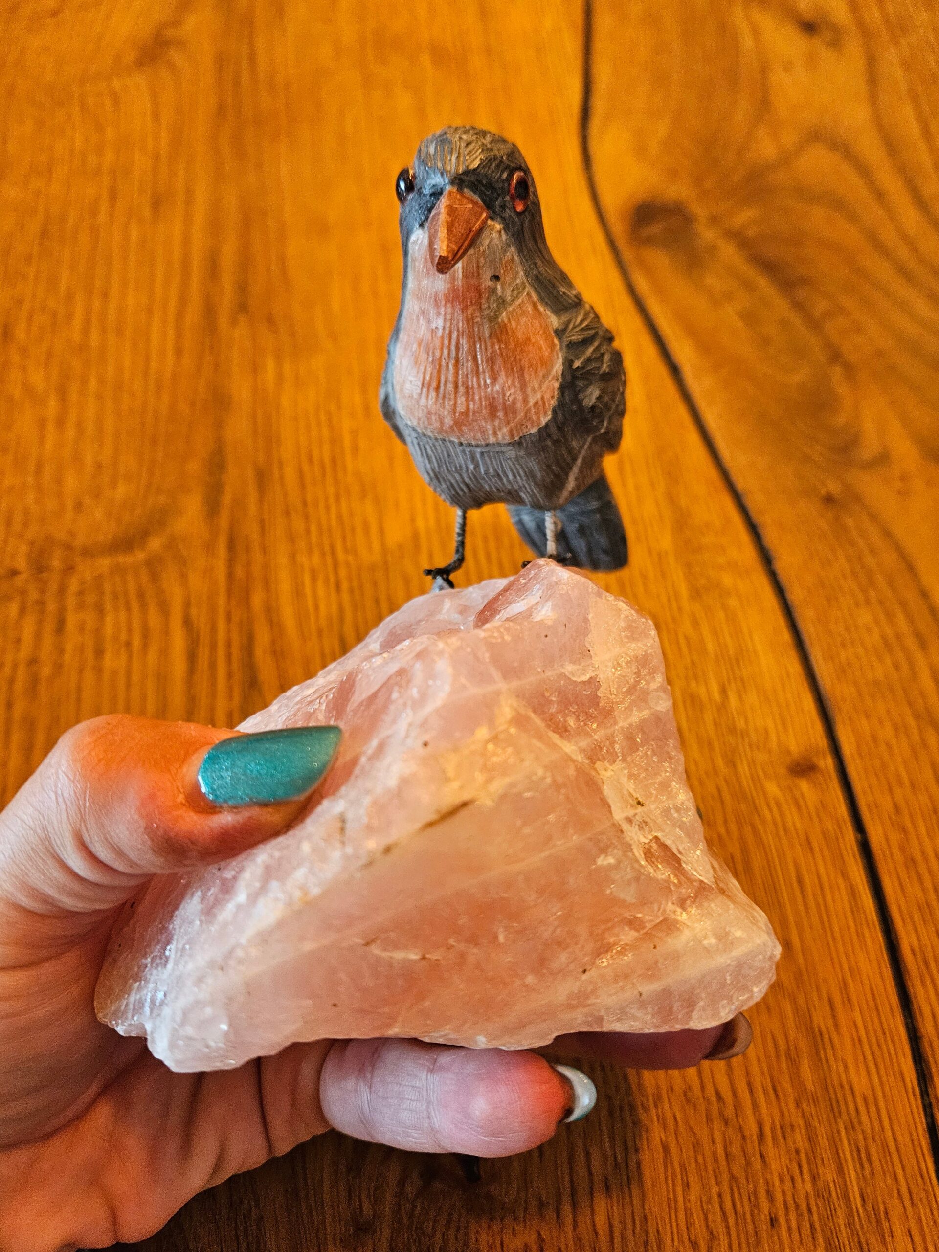 Rosenquarz mit Graphit-Vogel 1064gr (unikat)