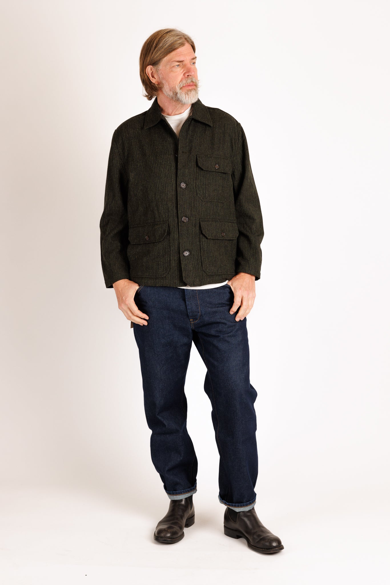 Striped Wool Mix Utility Jacket. 60% wool, 40% polyester